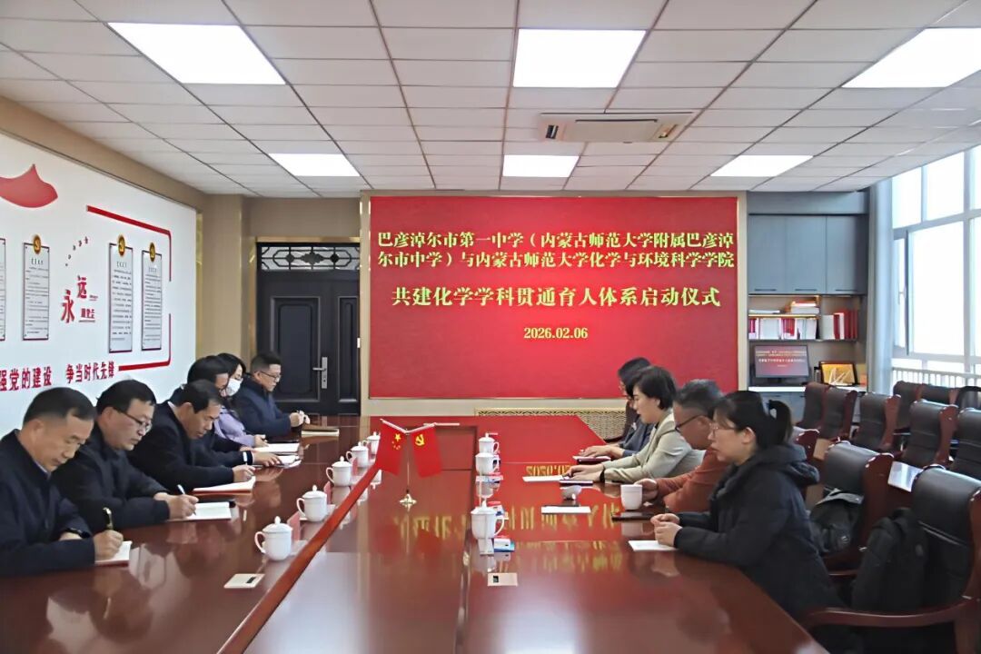 与巴彦淖尔市第一中学(内蒙古师范大学附属巴彦淖尔市中学)共建化学学科贯通育人体系启动仪式在巴彦淖尔市隆重举行。本次合作立足高校与中学协同育人核心目标,聚焦化学学科优质教育资源整合共享,深化双方既有合作基础,为学生成长成才搭建全新发展平台、开辟多元进阶路径。两校相关负责同志参加启动仪式。